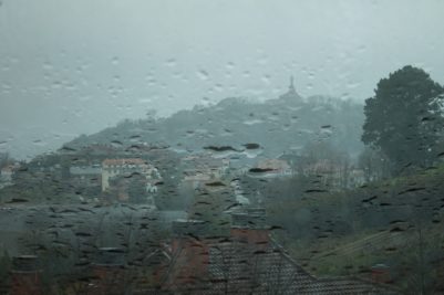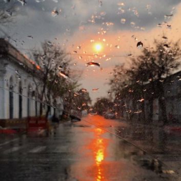 La lluvia deja muchos paisajes evocadores. Más allá de las llamativas gotas tras el cristal, encontramos escenas como la destacada de esta semana, de Noelia Acero y titulada «En el tren, tras el cristal, veía el agua resbalar… una y otra vez». Me gusta porque sugiere, por su esencia onírica y nostálgica. Me encanta que sea un paisaje indefinido, borrado por la lluvia, difuso. El blanco y negro acompaña el sentimiento de melancolía que viaja también en ese tren y me encanta la suave curva del río que con elegancia te acompaña hasta la torre. Felicidades, Noelia.