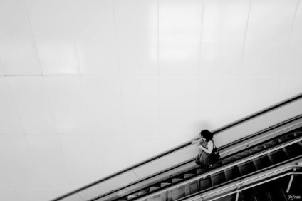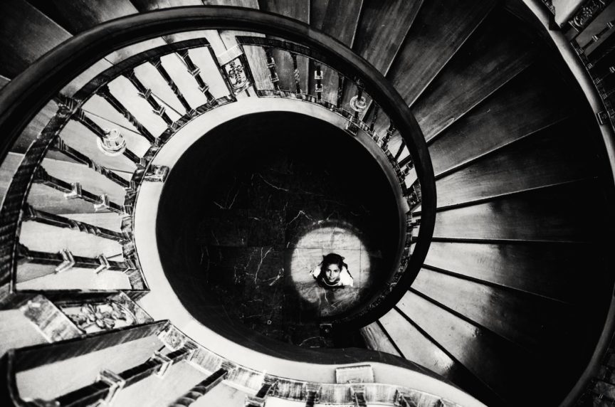 Quiero destacar la imagen «Bajando al centro de la luz», de jjoperico. Una fotografía que me ha atrapado en su espiral. Una maravillosa perspectiva cenital que hace magia con esta escalera, exprime todo su potencial y además le saca un gran partido al bello juego de luces. Un acierto el blanco y negro para sacar lo mejor de la luz, de las texturas de los peldaños y del suelo y de la geometría de la escalera. Y ya para rematar ese niño al final, en medio del círculo de luz, me encanta. Una gran fotografía, ¡felicidades!
