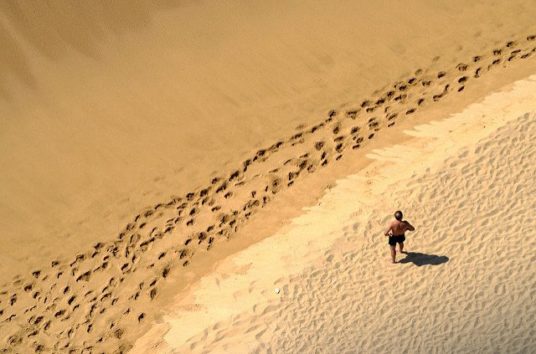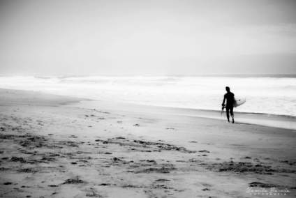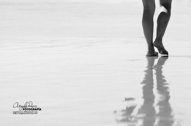 Difícil elección, son tantas las que me han cautivado que me ha costado decidirme por una sola, al final me quedo con «Decidiendo el rumbo», de Mario Alberto (hoy parece que el tema son las decisiones en lugar de la playa 😉 ). Me encanta esta fotografía, habría agradecido un poco más de resolución para que la pudierais ver mejor pero es algo perdonable, ¿verdad? Y me gusta porque es original, porque la perspectiva utilizada ha permitido a Mario capturar una diagonal de pasos que aportan a la imagen una gran tensión y fuerza. La composición resulta muy interesante con esta línea dividiendo la fotografía en tres partes, sí, digo tres partes porque es la realidad. La diagonal de pasos por su anchura junto con el trocito de arena lisa, forman una tercera parte. La imagen se divide en tres bandas diferentes y eso la hace más atractiva. Es una fotografía a color pero monocromática, el color de la arena, mojada o seca es el predominante junto con el negro de las sombras y el bañador. En este caso, el que se haya disparado con luz dura ha ayudado a destacar la textura de la arena y potenciar la sombra en las pisadas. Esta imagen con una luz más difusa probablemente no habría resultado tan sugestiva. El centro de interés está perfectamente colocado utilizando la regla de los tres tercios y si bien la ley de la mirada no se aplica del todo, creo que ha sido algo intencionado para potenciar la sensación de agobio que puede producir la indecisión. Gran captura, Mario, ¡felicidades!