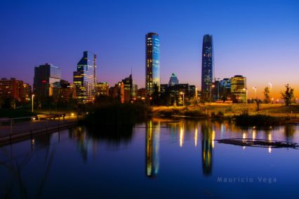 Me ha encantado la fotografía de Mauricio Vega, que nos lleva al “Parque Bicentenario”, lugar desde el que nos muestra el momento conocido como “Hora azul” y que él ha captado perfectamente. Ese instante en el que el cielo abarca desde las tonalidades más cálidas hasta las más frías y oscuras que dan paso a la noche, desde los colores del sol hasta la oscuridad total. El momento en el que la ciudad se enciende y la escena se inunda de pequeñas luciérnagas artificiales antes de dar paso al encendido de las luces del cielo, las estrellas. Me gusta tanto la calidad de la imagen como la estética. El agua le da profundidad a la imagen y sirve además para lograr una sutil simetría de formas y luces barrida por el movimiento de ésta. Y a la vez le aporta una carga de tranquilidad que se respira nada más ver la foto, esa tranquilidad que llega al final del día, cuando el ajetreo de la jornada llega a su fin y reina la paz, el silencio de la noche y nos abraza la calidad de nuestros hogares. ¡Felicidades Mauricio por capturar este mágico instante!