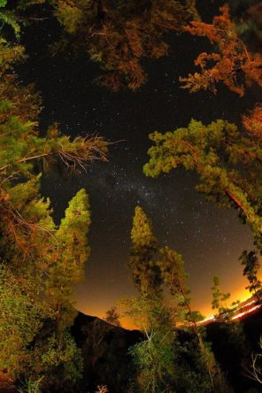 Como ya sabéis, lo de elegir una fotografía es realmente subjetivo. La fotografía es un arte y, dentro de unos parámetros mínimos de corrección, en la elección entran muchos factores, entre ellos personales o emocionales, puesto que lo importante, como cualquier obra artística, es que nos remueva, nos transporte a ese lugar, nos emocione o nos haga sentir algo especial. Por eso esta semana quiero destacar la imagen de Arturo Enrique Merino Espinoza. A pesar de que yo soy muy de mar y las fotografías de playa me tiran mucho (se me debe notar bastante), las Termas de Jahuel me han atrapado. Su autor ha tomado la imagen en un acertado ángulo nadir, una perspectiva extrema enfatizada con un gran angular que logra que sientas el abrazo de los árboles. Al ver la foto me he imaginado al instante tumbada sobre un saco de dormir, a la luz de las estrellas y con una hoguera cerquita dándome calor. Me ha recordado lo maravilloso que es estar en plena naturaleza para poder contemplar el baile de estrellas que cada noche nos regala el firmamento, el silencio que abruma en plena montaña cuando cae la noche y que sólo el sonido de los animales es capaz de romper. Preciosa armonía cromatica salpicada con las estrellas que se mueven en la imagen por la captura de larga exposición. De esta forma también ha podido capturar la luz que desprende la ciudad al fondo, como si de un incendio se tratara. ¡Gracias por transportarnos al corazón de la naturaleza al abrigo de la noche!
