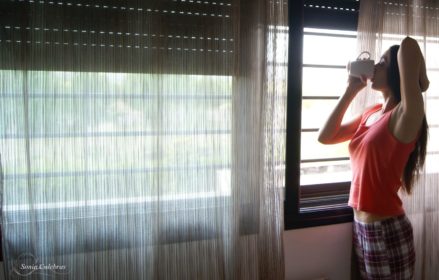 Y después de darle vueltas y cambiar de opinión más de una vez (lo siento, soy persona 😉 ). Al final vuelvo a asomarme a la ventana de Aldara Gómez titulada «Buenos días mundo». Me gusta la composición en la que siguiendo con la regla de los tres tercios, divide la foto en tres franjas verticales claramente identificadas. Una negra, otra blanca y una combinación de ambas en la tercera, como si de un juego se tratara. Al igual que el juego de luces que provocan las cortinas y el de líneas de las cortinas, la ventana y la camiseta. Me gusta porque sugiere, porque muestra sin enseñar. Sólo vemos una parte de la mujer asomada, que casi seguro ha sido fotografiada desde alguien que aún permanece en la cama. Su rostro es una incógnita que llama a la imaginación del espectador, al igual que lo que está viendo por la ventana. Se asoma para ver qué le depara el nuevo día, sol, lluvia, algo nuevo en la calle, ¿alguien abajo esperando? Esta fotografía es como un bonito cuaderno de notas con la primera línea escrita y esperando a que la persona que lo reciba continúe el resto de la historia. ¡Felicidades Aldara! Os espero en el próximo reto 😉