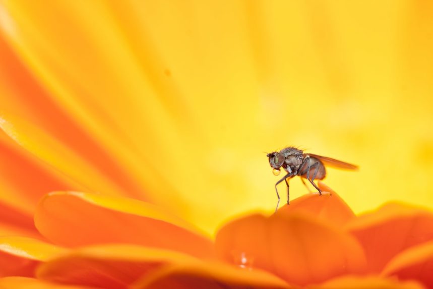 En esta ocasión voy a destacar la imagen (sin título, ejem, ejem…) de Mario Ajona. Un impresionante macro, con una excelente luz y enfoque. La composición es espectacular, pues ha logrado destacar el centro de interés a través de la regla de los tercios, el contraste de colores y la profundidad de campo. Es una fotografía impecable a nivel técnico y estético, pero además, ha conseguido algo mucho más allá de un maravilloso macro. Muchos macros de insectos (y más de una mosca) suelen tener ese aire de laboratorio tan aburrido y frío… Sin embargo, esta fotografía no lo es. El naranja le aporta tal calidez a la mosca que parece haber sufrido una metamorfosis inversa a la que conocemos por la película de «La mosca» o por el libro de Kafka. En este caso, la mosca parece transformase casi en una entrañable mascota o en un delicado ser vivo. Con ese entorno tan cálido, que la envuelve como si de un hogar se tratase, da la impresión de que este insecto poco agraciado esté a punto de convertirse en una preciosa mariposa. Claro que eso no es posible, pero la fotografía estimula la imaginación y ¿qué no es capaz de lograr la imaginación junto con un buen ojo fotográfico? ¡Felicidades, Mario!