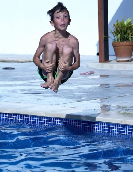 El verano es para eso, para relajarse, para desconectar y esta imagen lo transmite perfectamente. Por una parte la expresión del niño, con su cabeza medio hundida en el agua, gozando de la levedad del cuerpo que te permite el estar sumergido, libre de toda carga, de cualquier peso, aislado del mundanal ruido. Por otro lado, el color azul potencia aún más la sensación de paz, de tranquilidad y, cómo no, de frescor.