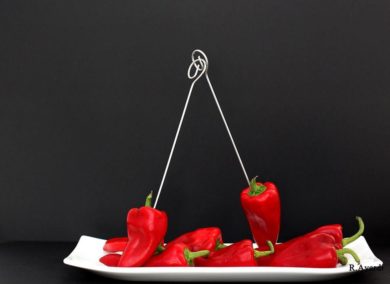 Esta semana la fotografía que más me ha gustado es la de Eila Lifflander. Tal vez coincidas conmigo o no, pero para mí esta fotografía está repleta de detalles sutiles que la convierten en mi favorita. En cuanto a la parte estética me gusta ese caos «ordenado» que rellena el encuadre. Me gusta la armonía de colores y me parece una perspectiva de lo más acertada en la que podemos ver todos los «ingredientes» de la imagen. Además, el encuadre horizontal transmite tranquilidad, la tranquilidad que hace falta para degustar un buen plato, la tranquilidad que produce una agradable comida. Y, además, la imagen transmite otras sensaciones relacionadas con la cocina y todo cuanto le rodea, tal y como comentaba al lazar el reto. Por un lado, la madera de fondo aporta la calidez que a mí me transmiten las cocinas, la copa de vino me recuerda a las comidas entre amigos, con familia, a las celebraciones… todas ellas con un denominador común: la cocina. Por otro lado, el toque mediterráneo que tanto me gusta, las verduras, las hortalizas, las hierbas aromáticas… todo ese conjunto de ingredientes meditarráneos que dejan como resultado un (aparentemente) delicioso plato de pasta que al menos por los ojos entra de miedo, que al final es por donde entra cualquier comida, ¡por la vista! Bonita presentación del plato (el todo) y de sus componentes. Me llega el aroma de las especies, del tomate frito y ese gustillo picante de la guindilla… ¡Bon apetit, Eila!