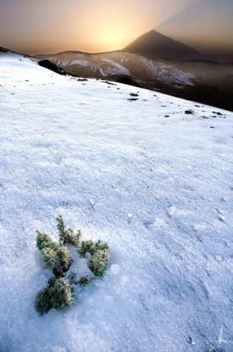 Esta semana he vocalizado un “¡oooohhhh!” al ver la “Calima helada” de Alberto Suarez Dosantos. Me ha parecido un paisaje tan espectacular como gélido, que es de lo que se trataba. Pero lo que más me ha gustado sobre este aspecto es que, a pesar de fotografiar lo evidente, como es el hielo o la nieve, lo ha hecho contrastando con colores cálidos, pero en un desequilibrio que evidentemente desnivela la balanza hacia el frío y lo ha hecho utilizando la regla del horizonte y dejándole los dos tercios al hielo para transmitir más sensación de frío que de calor. Un acierto total. Ha logrado también una sensación de profundidad enorme, con la vegetación en el primer plano y las montañas lejanas, un buen recurso para aportarle mayor atractivo a la imagen y guiar la mirada. Además ha utilizado una perspectiva realmente interesante, puesto que según cómo la mires, parece que está a la altura de los ojos o realizada desde un nivel más alto. O al menos es la sensación que a mí me produce y eso me gusta, porque es diferente y porque logra que te quedes durante un rato mirando la fotografía y pensando, “que guay sería estar ahora ahí mismo, sintiendo el frío en los pies y con la nariz congelada, pero con una enorme sensación de libertad, de paz, respirando el aire puro (aunque frío 😉 ) de la naturaleza y contemplar las maravillas que nos regala nuestra madre Tierra. Ya de paso aprovecho: cuidémosla, por favor, que ella nos lo da todo y ¡qué poquito se lo agradecemos! ¡Felicidades, Alberto! Un “cálido” saludo (para contrarrestar el frío que nos estás haciendo pasar) para ti y demás participantes.